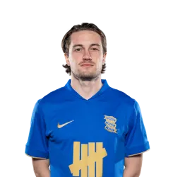 Jack Robinson (Birmingham City) wins a free kick in the defensive half.